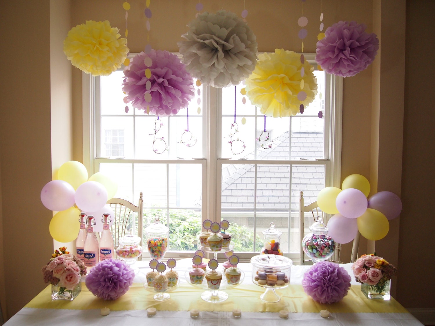 Eu estive reparando nas fotos que encontrei, que na maioria delas, existem vários detalhezinhos que no final fazem toda a diferença...por exemplo, essas festas possuem alguns cachinhos de balões, enfeites com fitas, bolinhas de crepom, luzinhas (Aquelas que usamos no Natal), pequenos arranjinhos de flores ou de papel ... e o resultado final é muito delicado e belo!! Espero que vocês gostem...